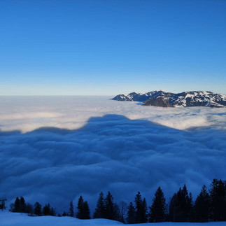 Am nächsten Morgen wurden wir von einem herrlichen Sonnenaufgang geweckt. Die ersten Sonnenstrahlen tauchten die schneebedeckten Berge in ein warmes Licht und schufen eine magische Atmosphäre. Der Schnee glitzerte im Morgenlicht und lud zu einem Spaziergang ein. Es war der ideale Ort, um zu entschleunigen und die Seele baumeln zu lassen. Der Aufenthalt im Berggasthaus Niederbauen schenkte uns unvergessliche Ausblicke und Momente der Ruhe.